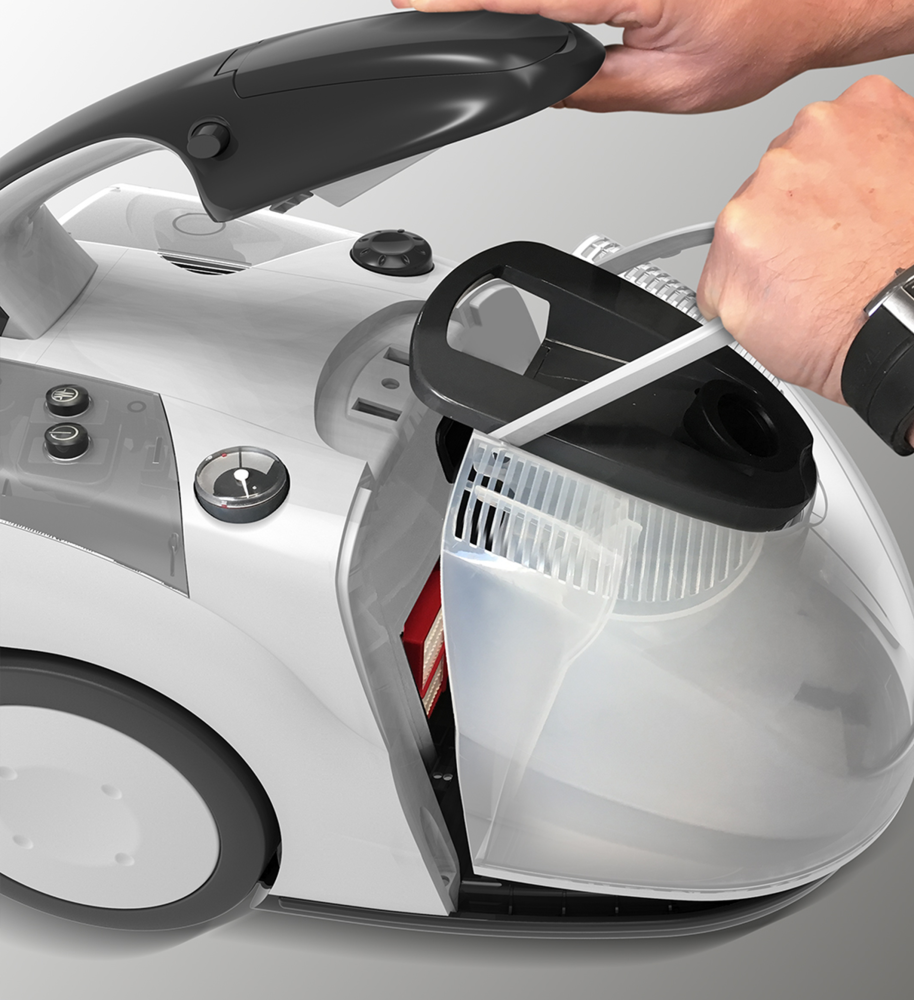 La Lavor GV Egon VAC permite, de forma simple, rápida y con el uso exclusivo de agua, la limpieza con vapor de todas las superficies así como la aspiración de polvo y líquido. Es posible limpiar y desinfectar todas las superficies (cerámica, acero inoxidable, vidrio, madera, linóleo, mármol, alfombras, sillones y sofás) con vapor a alta temperatura, eliminando ácaros, gérmenes, bacterias y previniendo la aparición de alergias. Contiene una caldera de acero inoxidable de alta presión con autonomía ilimitada, lista en unos instantes y se completa con un amplio conjunto de accesorios.Funcionamiento silencioso para áreas sensibles y llenas de gente, simplemente ajustando la potencia de aspiración en la pistola. Gracias al filtro de agua es posible vaciar el depósito de agua sucia en pocos segundos, sin necesidad de filtros de papel.No es necesario esperar a que se enfríe la caldera, puede rellenarla con seguridad, incluso mientras la esté utilizando.Ajuste la caldera, elija la intensidad del vapor. Todos los controles están en el mango, presione la palanca para el vapor y presione el botón para aspirar.